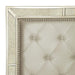 LORAINE Cal.King Bed, 92"L X 80 1/4"W X 68"H, 289.52lbs. This is what luxury feels and looks like in the bedroom. The padded leatherette headboard and footboard are beautifully complemented by antique mirror borders, which are also found on the case goods' front panels. Stylish details like the nailhead trim and button tufting, ring drawer pulls on the case goods drawers, and silver finish all add polish to this sophisticated bedroom set.